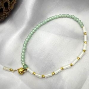 Green is associated with the growth of plants and trees, symbolizing a career/study that thrives, like plants. It also carries the image of peace (similar to the saying “bamboo brings peace”), signifying a smooth and vibrant life. White symbolizes purity and flawlessness, implying spiritual purification, inner peace, and helping the wearer clear their minds of distractions. The combination of various materials and Five Elements embodies the concept of “harmony of the Five Elements” and conveys comprehensive blessings for the wearer’s peace and prosperity, reflecting the traditional concept of “diversity and beauty in unity.”